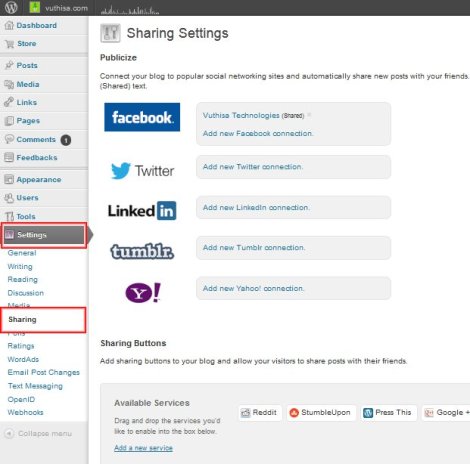 http://en.support.wordpress.com/publicize/#setting-up-publicize