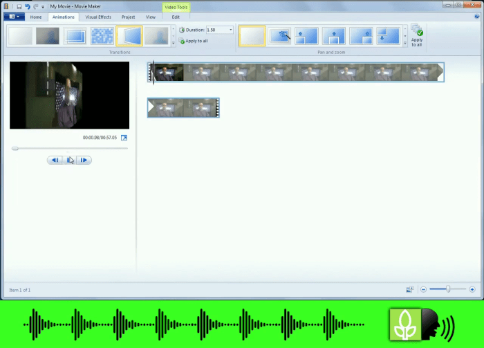 With that said, let’s look at creating a fake background for your video introduction. Okay that did not sound right did it? If you don’t make it obvious that it is fake, people may think you are trying to pull a fast one. The way we expose the static background setting is to create a transitional effect right in the beginning where part of the old background is revealed for a brief second or two. More on that later and we use Windows Movie Maker to create that effect. At the end of this Tutorial I list a download link to all the FREE tools I used to make our own Intro Video. I found that filming myself against a large background image saves a lot on editing time especially if your head moves around a lot which it will tend to do. In my case I filmed it against a 40 inch TV monitor with our company logo on a slideshow repeat in the background. As we will see later I should have lowered my seat slightly as there is an area in the video that still shows the old background because I had to compensate for that as my head was moving around. You’ll see what I mean.