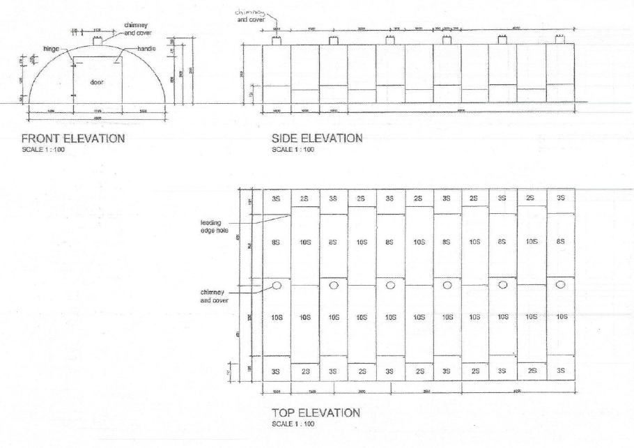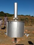 A further development was the incorporation of a refractory mesh screen covered in fibre plaster to increase the longevity of the kiln sheet metal and which will also result in an increase in thermal efficiency (upwards of 60% improvement). Our latest model is a rectangular model consisting of modular, square, 3CR12 panels to simplify construction and flat-packing for transport over mountainous terrain.