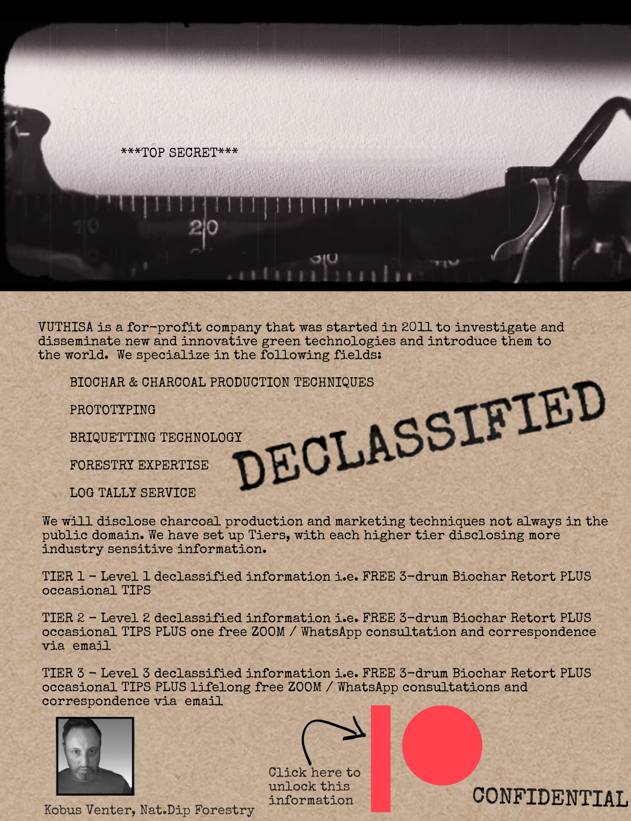 VUTHISA has been on the forefront of improving emissions from pyrolysis equipment especially of the type used in developing countries. Herewith our concept document to make sense of the charcoal industry in South Africa. Our study includes the types of systems being used and approximate cost of such systems and market potential of charcoal. Part of our conclusion is to produce Emission Reduction kilns that is also portable and this is discussed at the end.