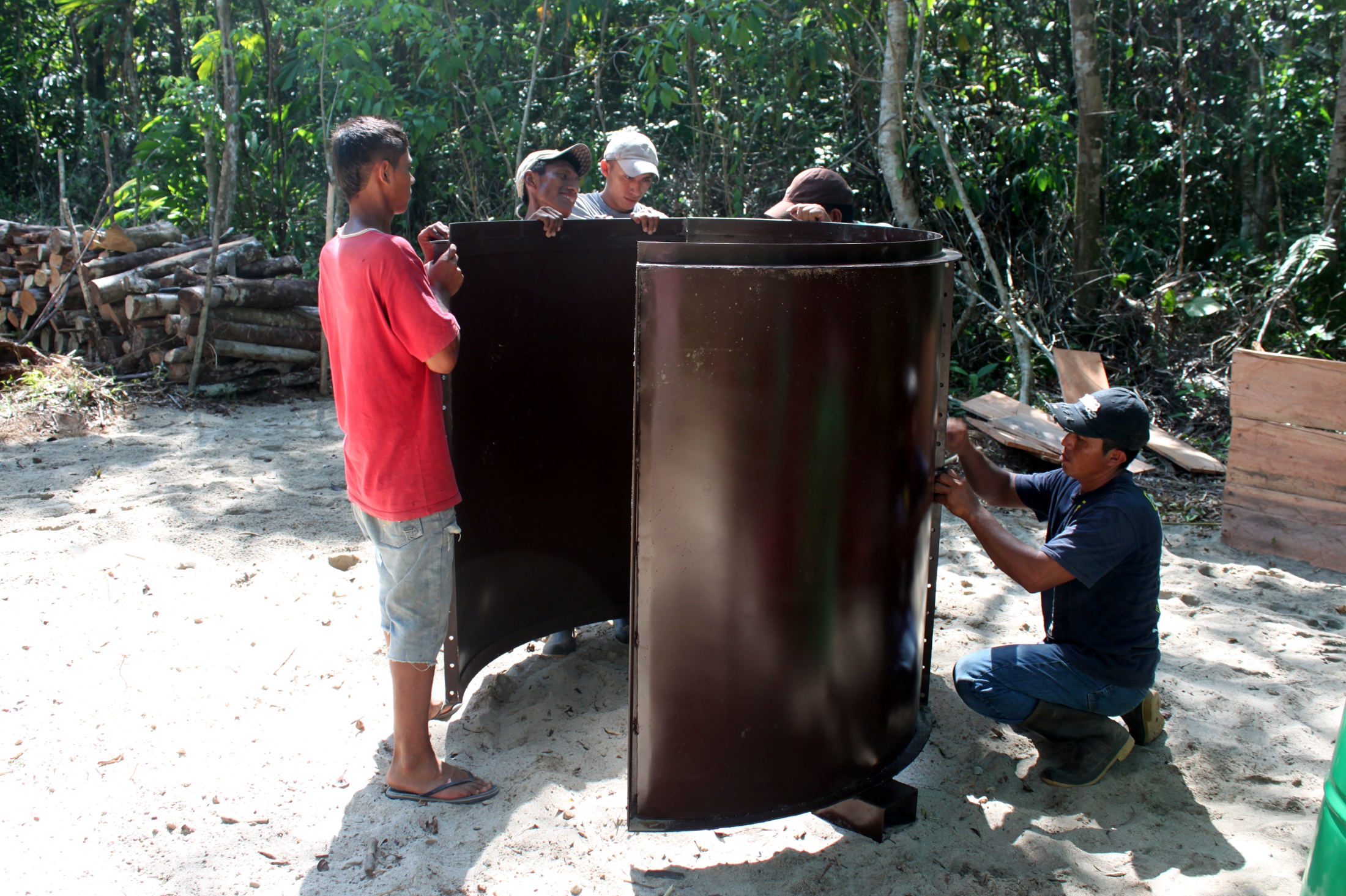 So in a nutshell our challenge is to re-circulate the volatiles during the exothermic phase back into the reaction and vent less greenhouse gases and ultimately achieve higher charcoal yields and create bona fide biochar. Are you up for the challenge? We have already found that constructing the kiln in 3 equal sections makes it easier to transport from the light engineering works to the feedstock site, where it can be assembled. No leakage was observed at the adjoining flanges and it is now easier to incorporate add-on features such as pre-heated secondary air ducting, blowers and chimneys without having to cut extra holes in the drum itself. We are continuing to make improvements and we are currently testing a conical lid and chimney via the ‘3-drum Biochar Retort’. For some history on the Trans-Portable Kiln, click here. For any queries contact us here. Join this cause and help us make a difference!